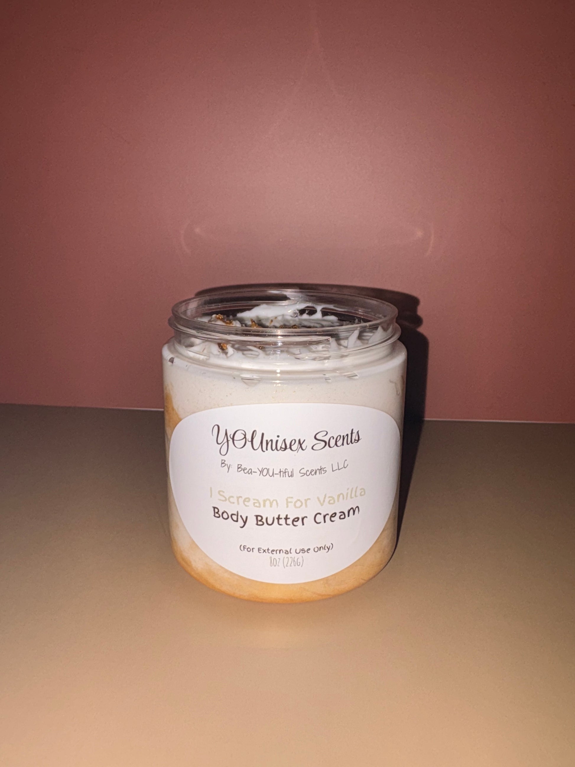 Lightly scented body butter cream. Perfect for moisturizing. Can be used on dry skin or fresh out of the bath or shower.